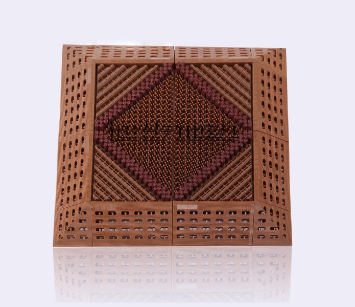 呈现更为人性化的功能设计! 让居室店堂更洁净!让个性品位更彰显! 经久耐用,不易磨损 由EVA原料精制而成,可耐高温70度、耐低温-50度,具有耐磨损、耐紫外线、抗腐蚀、抗氧化、防褪色、不易走形等优点,组合式设计可以使局部磨损时进行单块替换,使用寿命长达3-5年! 除尘刮泥功效强劲 能迪步三合一地垫清除鞋底携带的尘土和沙粒,刮扫污泥,同时整体透空结构使泥沙和污水下漏,保持垫面表层的清洁,有效确保室内环境卫生,更有效地防止地面及地板的损坏。 强雨雪天气下,更显其不同一般门垫之特色。 清洗凉晒便捷省力 整体透空结构与高分子塑胶材质,只需直接用水冲洗,立刻光洁如新!塑胶本身具有很强的柔韧性,搬抬都很方便,更使得迪步三合一地垫的清洁变得非常简单便捷。 自由组合无限拼接 迪步三合一地垫特有的组合拼装式设计,使安装拆卸极为方便。每个单块都拥有固定的凸牙和凹孔,利用力学原理巧妙对接,客户可根据自己的喜好拼接不同的图案样式。 特有的斜坡装饰边,可很好的保证门垫紧附于地面。有效地避免被风刮起或者被脚踢起。 同时斜坡与方块的组合,具有更大的空间适应性,可整齐的在立柱四周、拐角等特殊角落铺设。 环保品质无毒无味国家权威质检机构认证 迪步地垫以卓越品质著称业界,我们的选材全部通过国家环保认证,产品质量上乘,无刺激性气味。同时由于塑胶原料的疏水特质,因此不易受到泥水的腐蚀,可以有效防止病菌滋生与难闻异味。 国际时尚品位环保潮流之选 环保与健康,是这个时代的呼唤,也是整个社会的思想潮流。迪步三合一地垫以其经久耐用、强效除尘等环保特性成为了居室装饰的时尚新宠。无论是在高档住宅还是企业门前、商场入口以及电梯口、车库内,凡是需要保持室内、车内清洁美观的场所,迪步三合一地垫都能成为您的得力助手。门前一块与众不同的门垫,将在细节上彰显您与国际潮流同步的不凡品位!