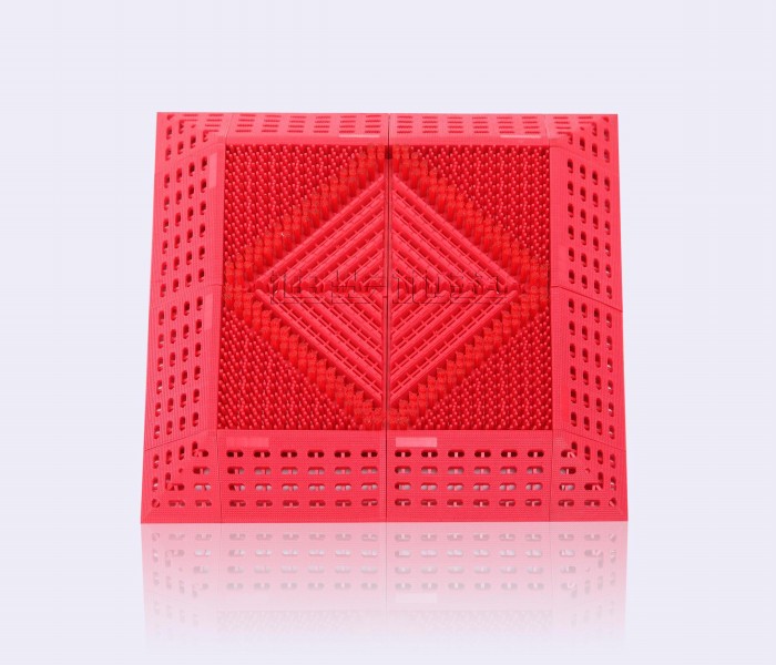 EVA:三合一红色 呈现更为人性化的功能设计! 让居室店堂更洁净!让个性品位更彰显! 经久耐用,不易磨损 由EVA原料精制而成,可耐高温70度、耐低温-50度,具有耐磨损、耐紫外线、抗腐蚀、抗氧化、防褪色、不易走形等优点,组合式设计可以使局部磨损时进行单块替换,使用寿命长达3-5年! 除尘刮泥功效强劲 能迪步三合一地垫清除鞋底携带的尘土和沙粒,刮扫污泥,同时整体透空结构使泥沙和污水下漏,保持垫面表层的清洁,有效确保室内环境卫生,更有效地防止地面及地板的损坏。 强雨雪天气下,更显其不同一般门垫之特色。 清洗凉晒便捷省力 整体透空结构与高分子塑胶材质,只需直接用水冲洗,立刻光洁如新!塑胶本身具有很强的柔韧性,搬抬都很方便,更使得迪步三合一地垫的清洁变得非常简单便捷。 自由组合无限拼接 迪步三合一地垫特有的组合拼装式设计,使安装拆卸极为方便。每个单块都拥有固定的凸牙和凹孔,利用力学原理巧妙对接,客户可根据自己的喜好拼接不同的图案样式。 特有的斜坡装饰边,可很好的保证门垫紧附于地面。有效地避免被风刮起或者被脚踢起。 同时斜坡与方块的组合,具有更大的空间适应性,可整齐的在立柱四周、拐角等特殊角落铺设。 环保品质无毒无味国家权威质检机构认证 迪步地垫以卓越品质著称业界,我们的选材全部通过国家环保认证,产品质量上乘,无刺激性气味。同时由于塑胶原料的疏水特质,因此不易受到泥水的腐蚀,可以有效防止病菌滋生与难闻异味。 国际时尚品位环保潮流之选 环保与健康,是这个时代的呼唤,也是整个社会的思想潮流。迪步三合一地垫以其经久耐用、强效除尘等环保特性成为了居室装饰的时尚新宠。无论是在高档住宅还是企业门前、商场入口以及电梯口、车库内,凡是需要保持室内、车内清洁美观的场所,迪步三合一地垫都能成为您的得力助手。门前一块与众不同的门垫,将在细节上彰显您与国际潮流同步的不凡品位!