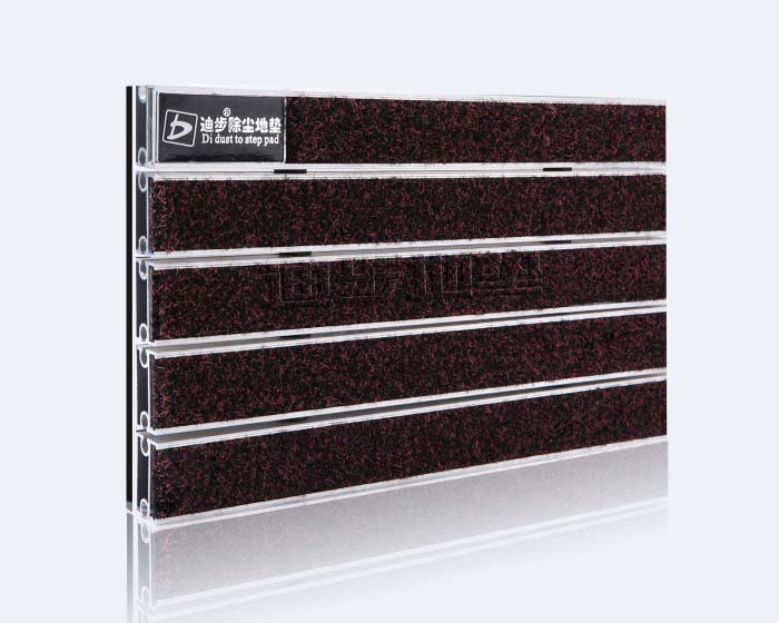 铝框架采用Alcoa高精度纯铝耐腐蚀防锈硬质铝合金,侧面高度达到20MM±1,铝合金壁厚为1.0MM-1.5MM-2MM-2.5MM-3.5MM,,其承重力在标准滚动下每平方可达1500kg-2500kg-4000kg-6000kg不变形,承受力强。面料采用纱线材料:100%PA,底:PVC,纱线重:±950g/㎡,总重:±3900g/㎡,纱线高:±5mm,总厚度:±8.5mm,使用等级EN1307:5mm等级3,5,Total height:总高:7mm,尺寸稳定性EN 986:<1%,洗牢固性ISO105 E01:4-5,耐磨性ISO105X12:4-5,吸水性6034:±4.8l/㎡,防火性B3810:B1-Q1,色牢性ISO 105 B02:7.5面料色彩丰富,可根据客户需要灵活搭配。配件:锁扣为Sus304不锈钢锁扣,钢丝为特殊处理的防锈包塑钢丝。底部采用900系统制成两边支撑力大,更能够完美保持地垫的高度一致。铝合金尼龙地垫放置于高级石材或地砖坑槽内。避免了传统地毯与地面石材的摩擦,能延长石材面板保护膜的寿命同时有效保护地面石材的表面光滑度。