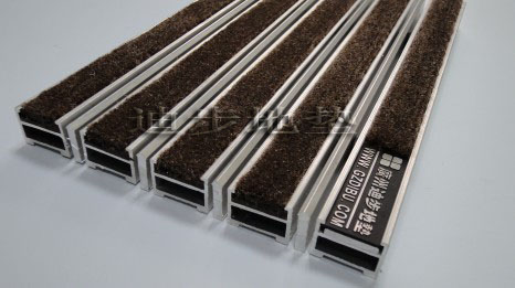 铝刮条:德国9005浓咖啡 铝刮条德国900系列技术参数 铝框架采用Alcoa高精度纯铝耐腐蚀防锈硬质铝合金,侧面高度达到20MM±1,铝合金壁厚为2MM±0.1,其承重力在标准滚动下可达2500kg-4000kg/㎡不变形,承受力强。面料采用90%丙纶BCF膨体丝 10%尼龙66单丝,底背:高防腐的UV丙纶长丝,密度:320/520毯基上绒高:7.5mm,阻燃测试等级:GB8624-1997,静电抑制类:GB/T18044-2000级标准,耐磨擦牢度:干、湿摩擦牢度4-5级,室内空气纯度:环保标准GB18587-2001,底部背胶:PP(T30S)聚丙烯颗粒,底部背胶厚度:1.5-1.8mm。面料色彩丰富,可根据客户需要灵活搭配。配件:锁扣为Sus304不锈钢锁扣,钢丝为特殊处理的防锈包塑钢丝。底部采用900系统制成两边支撑力大,更能够完美保持地垫的高度一致。地垫放置于高级石材或地砖坑槽内。避免了传统地毯与地面石材的摩擦,能延长石材面板保护膜的寿命同时有效保护地面石材的表面光滑度。 |