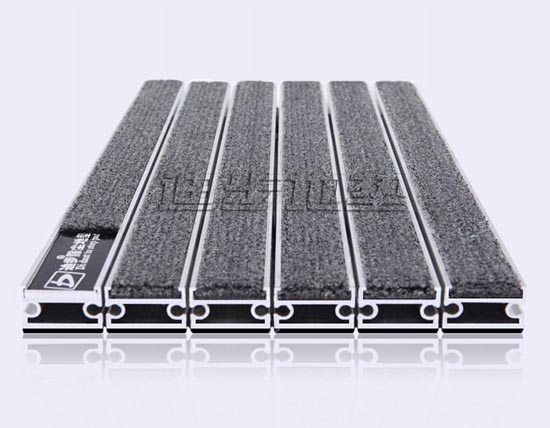 加强型德国900系列技术参数 铝合金地垫铝框架采用Alcoa航空高精度纯铝耐腐蚀防锈硬质铝合金,侧面高度达到20MM±1,铝合金壁厚为2MM±0.1,其承重力在标准滚动下可达2500kg-4000kg/㎡不变形,承受力强。面料采用90%丙纶BCF膨体丝 10%尼龙66单丝,底背:高防腐的UV丙纶长丝,密度:320/520毯基上绒高:7.5mm,阻燃测试等级:GB8624-1997,静电抑制类:GB/T18044-2000级标准,耐磨擦牢度:干、湿摩擦牢度4-5级,室内空气纯度:环保标准GB18587-2001,底部背胶:PP(T30S)聚丙烯颗粒,底部背胶厚度:1.5-1.8mm。面料色彩丰富,可根据客户需要灵活搭配。配件:锁扣为Sus304不锈钢锁扣,钢丝为特殊处理的防锈包塑钢丝。底部采用900系统制成两边支撑力大,更能够完美保持地垫的高度一致。铝合金地垫放置于高级石材或地砖坑槽内。避免了传统地毯与地面石材的摩擦,能延长石材面板保护膜的寿命同时有效保护地面石材的表面光滑度。