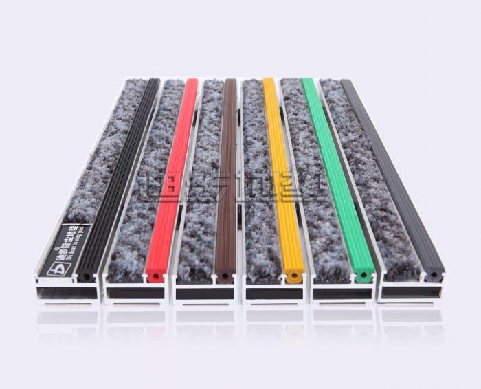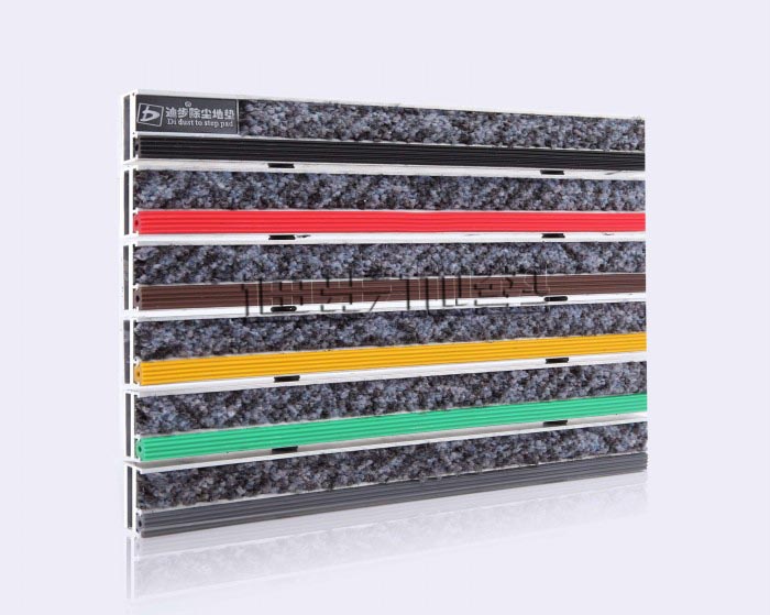 组合:Miliken美利肯700系列 组合:Miliken美利肯700系列技术参数 铝框架采用Alcoa高精度纯铝耐腐蚀防锈硬质铝合金,侧面高度达到20MM±1,铝合金壁厚为2MM±0.1,其承重力在标准滚动下可达2500kg-4000kg/㎡不变形,承受力强。面料采用90%丙纶BCF膨体丝 10%尼龙66单丝,底背:高防腐的UV丙纶长丝,密度:320/520毯基上绒高:7.5mm,阻燃测试等级:GB8624-1997,静电抑制类:GB/T18044-2000级标准,耐磨擦牢度:干、湿摩擦牢度4-5级,室内空气纯度:环保标准GB18587-2001,底部背胶:PP(T30S)聚丙烯颗粒,底部背胶厚度:1.5-1.8mm。面料色彩丰富,可根据客户需要灵活搭配。配件:锁扣为Sus304不锈钢锁扣,钢丝为特殊处理的防锈包塑钢丝。底部采用900系统制成两边支撑力大,更能够完美保持地垫的高度一致。地垫放置于高级石材或地砖坑槽内。避免了传统地毯与地面石材的摩擦,能延长石材面板保护膜的寿命同时有效保护地面石材的表面光滑度。、 |