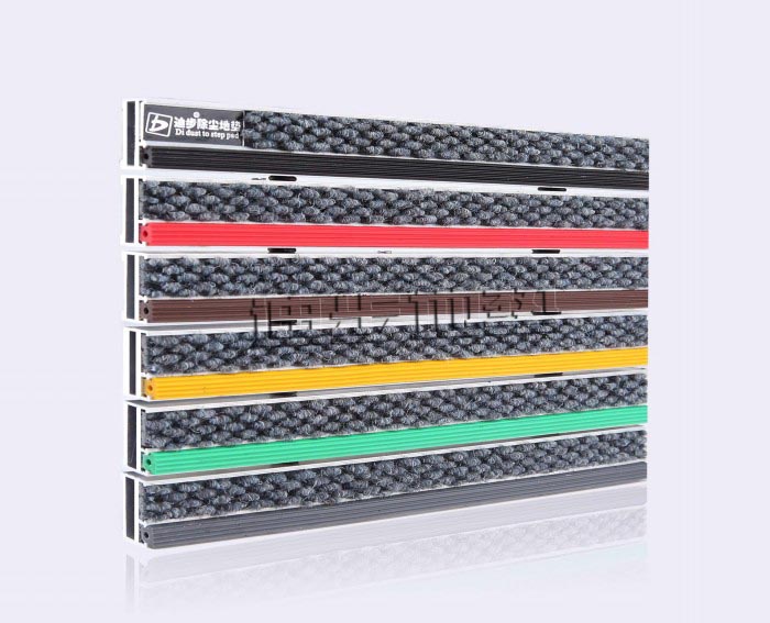 铝框架采用Alcoa高精度纯铝耐腐蚀防锈硬质铝合金,侧面高度达到20MM±1,铝合金壁厚为1.0MM-1.5MM-2MM-2.5MM-3.5MM,,其承重力在标准滚动下每平方可达1500kg-2500kg-4000kg-6000kg不变形,承受力强。面料采用SurfaceISO 2424/DIN 61151、平整 needle felt,纱线 pile yarnCEE83/623100%PP ,底 backing ISO 2424PVC/PD毛高pile heightISO 1776/DIN543253.5mm ,毛重pile weightISO8543 1150g/㎡,总高度total heightISO1765/DIN538558.0mm(PVC)8.5mm(PD),总重量total weightISO8543/DIN538542850g/(PVC)2210g/(PD),尺寸稳定性dimensional changeISO 2551/DIN 54318、通过pass,隔音性sound insulationISO 140/8 DIN52210、通过pass阻燃性Flammability ratingBS4790 DIN4102 T14B2/ta/t2 pass通过 B2/tat2面料色彩丰富,可根据客户需要灵活搭配。配件:锁扣为Sus304不锈钢锁扣,钢丝为特殊处理的防锈包塑钢丝。底部采用900系统制成两边支撑力大,更能够完美保持地垫的高度一致。地垫放置于高级石材或地砖坑槽内。避免了传统地毯与地面石材的摩擦,能延长石材面板保护膜的寿命同时有效保护地面石材的表面光滑度。