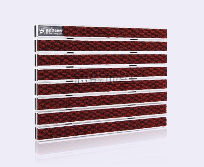 铝框架采用Alcoa航空高精度纯铝耐腐蚀防锈硬质铝合金,侧面高度达到20MM±1,铝合金壁厚为1.0MM-1.5MM-2MM-2.5MM-3.5MM,,其承重力在标准滚动下每平方可达1500kg-2500kg-4000kg-6000kg不变形,承受力强。面料采用SurfaceISO 2424/DIN 61151、平整 needle felt纱线 pile yarn:CEE83/623、100%PP 底 backing ,ISO 2424、PVC/PD毛高pile height:ISO 1776/DIN54325、3.5mm 毛重pile weight:ISO8543 1150g/㎡,总高度total height:ISO1765/DIN53855、8.0mm(PVC底)8.5mm(PD底)总重量total weight:ISO8543/DIN53854、2850g/㎡(PVC底)2210g/㎡(PD底)尺寸稳定性dimensional change:ISO 2551/DIN 54318、通过pass隔音性sound insulation:ISO 140/8 DIN52210、通过pass阻燃性Flammability rating:BS4790 DIN4102 T14、B2/ta/t2 pass通过 B2/tat2面料色彩丰富,可根据客户需要灵活搭配。配件:锁扣为Sus304不锈钢锁扣,钢丝为特殊处理的防锈包塑钢丝。底部采用900系统制成两边支撑力大,更能够完美保持地垫的高度一致。地垫放置于高级石材或地砖坑槽内。避免了传统地毯与地面石材的摩擦,能延长石材面板保护膜的寿命同时有效保护地面石材的表面光滑度。