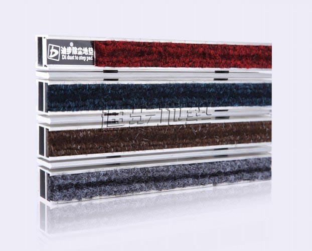 铝框架采用Alcoa高精度纯铝耐腐蚀防锈硬质铝合金,侧面高度达到20MM±1,铝合金壁厚为1.0MM-1.5MM-2MM-2.5MM-3.5MM,,其承重力在标准滚动下每平方可达1500kg-2500kg-4000kg-6000kg不变形,承受力强。面料采用Surface:ISO 2424/DIN 61151、needle felt针刺式,纱线pile yarn:CEE83/623、100%PP,底backing:ISO 2424、PVC/PD ,毛高pile height:ISO 1776/DIN54325、5.0mm,毛重pile weight:ISO8543650g/㎡,总高度total height:ISO1765/DIN53855、8.0mm(PVC底)8.3mm(PD底),总重量total weight:ISO8543/DIN53854、2650g/㎡(PVC底)2210g/㎡(PD底),尺寸稳定性dimensionalchange:ISO 2551/DIN 54318、通过pass,隔音性sound insulation:5mm等级3,5ISO 140/8 DIN52210、通过pass,阻燃性Flammability rating:BS4790 DIN4102 T14、B2/ta/t2 pass通过B2/tat2、面料色彩丰富,可根据客户需要灵活搭配。配件:锁扣为Sus304不锈钢锁扣,钢丝为特殊处理的防锈包塑钢丝。底部采用900系统制成两边支撑力大,更能够完美保持地垫的高度一致。地垫放置于高级石材或地砖坑槽内。避免了传统地毯与地面石材的摩擦,能延长石材面板保护膜的寿命同时有效保护地面石材的表面光滑度。